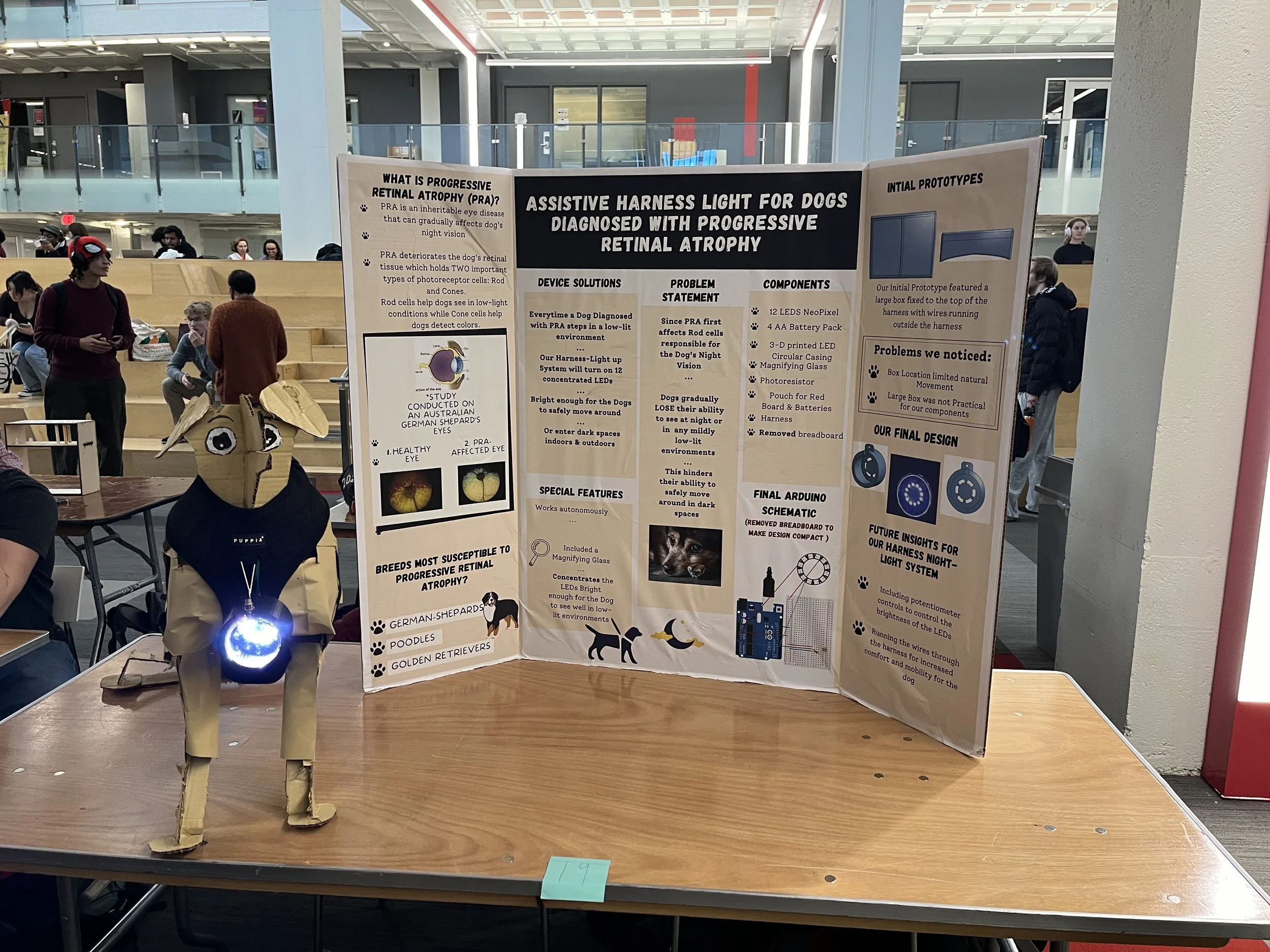 Led a four-person team in developing a photoresistor-activated wearable light designed to aid dogs with progressive retinal dystrophy. Iterated multiple 3D-printed housings for the Adafruit NeoPixel Ring to optimize fit and functionality. Directly soldered components to eliminate the need for a breadboard, reducing bulk and improving comfort of the harness.